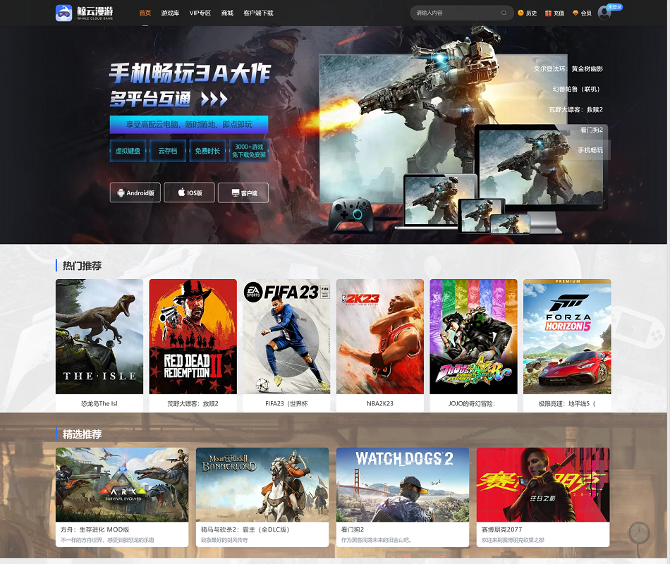 - 平台涵盖上千款游戏资源,包括 Steam 热门游戏及 3A 大作(如《荒野大镖客》《GTA》《使命召唤》),且最高可支持 4K HDR 画质输出(视终端而定)。